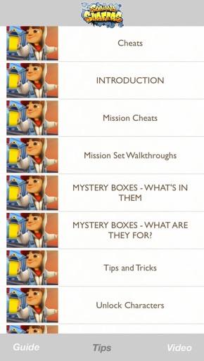 Create Screenshots Like Cheats & Tips, Video & Guide for Subway Surfers Game.Style: iOS Native (Legacy)