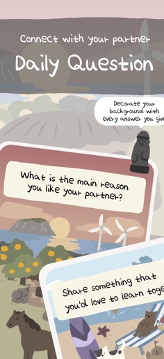 Create Screenshots Like Couple Tree: For RelationshipCouple Tree is a free paired app designed for couples to grow closer through daily questions, horoscopes, games, and shared memories—sparking meaningful conversations and quality time together. It's the perfect tool for couples looking to deepen their connection and track their relationship milestones, including those in long-distance relationships. Couples Questions & Couples Games -Explore meaningful couples questions, enjoy interactive games such as Truth or Dare and Would You Rather, and dive into entertaining activities designed specifically to enhance intimacy, laughter, and understanding between you and someone special. Horoscope & Tarot: -Check your daily horoscope and tarot readings to explore your couple’s compatibility every day Romantic Diary for Couples: -Share daily emotions, thoughts, and precious memories in your romantic diary, creating a cozy space to store your treasured moments, perfect for strengthening your relationship, even from afar. Grow Your Love Forest Together: -Answer thoughtful couples questions and complete relationship activities to plant and nurture trees in your private forest, symbolizing your growing love. Couple AI: -With our Cat AI Counselor, find out personalized date courses just for the two of us and even see what we’ll be like in 10 years! Couple Calendar and Been Love Widget: -Track important milestones and anniversaries with the popular 'Been Love' couple widget and integrated calendar, ensuring you never miss a special moment together. Ideal for Long Distance Relationships: -Bridge the distance effortlessly. Our couple widget and relationship tracker features help maintain your connection, making long distance relationships feel closer and warmer. Gentle Love Nudges: -Receive gentle reminders and nudges to regularly engage in meaningful relationship activities, keeping your love fresh, vibrant, and evergreen. No Subscription Required: -Enjoy all features for free, with an optional affordable 1+1 lifetime premium access—without hidden subscriptions or fees. Plant your love, nurture your relationship, and watch your Couple Tree flourish!