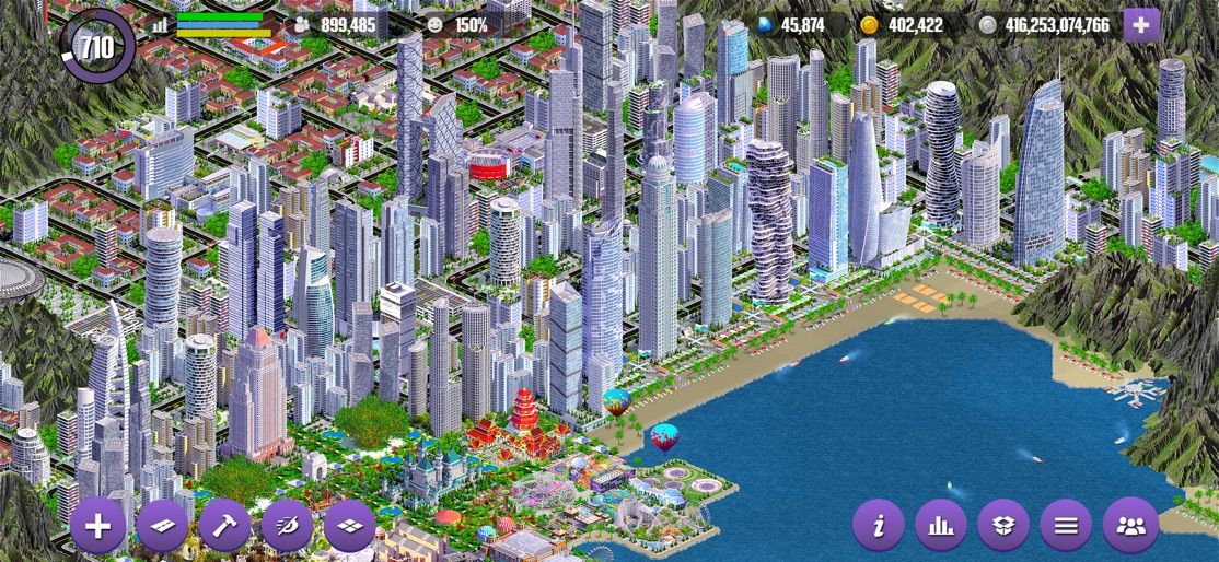 Create Screenshots Like Designer City: building gameFree Offline City Building Game – No Wait Times! Tired of waiting to build? In this free offline city building game there are no timers—you control the pace. Design your city, expand your skyline, and create a thriving metropolis with 2,000+ landmarks and skyscrapers. BUILD YOUR CITY, YOUR WAY Construct houses, apartments and skyscrapers to attract residents. Create jobs with commercial and industrial buildings. Add city services, sports, leisure and community buildings, parks and decorations to keep everyone happy. Design a unique city skyline filled with landmarks, monuments and world-famous towers. BECOME A CITY TYCOON Happy citizens work harder and generate more income for you to reinvest. Manage transportation networks of roads, railways, subways and highways to keep people moving. Build airports, seaports and farms to boost business, trade and food supply. Expand beyond the city with an army, navy, air force and even a space program. STRATEGY AND SIMULATION Choose how you want to play: • Relax and design a beautiful city skyline. • Use advanced analytics and statistics to optimize your city. • Manage pollution, zoning, services and revenue like a true city tycoon. DYNAMIC AND UNIQUE Every city is different thanks to dynamic land generation. Shape the landscape however you want - add rivers, mountain ranges, forests and lakes. Create a green, carbon-neutral city using renewable power and public transport, or build a bustling downtown packed with skyscrapers and real life buildings. ENDLESS CITY BUILDING FUN With almost 2,000 buildings, trees and decorations, no two cities will ever be the same. Reset and build again on a brand-new landscape. Climb the leaderboards with your dream city. PLAY FREE, OFFLINE OR ONLINE Designer City can be played completely free. No internet connection required. Optional in-game purchases are available if you wish to expand even faster.