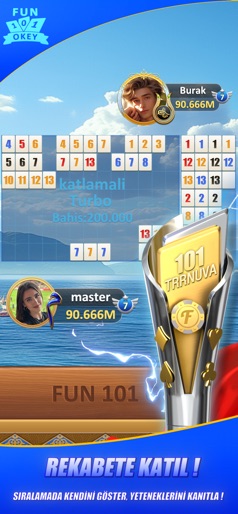 Fun 101 Okey – Play with Friends! One of Turkey’s most popular 101 Okey games is now live! Experience various game modes, generous chip rewards, and fast-paced 101 action. Everything is ready – only you are missing! Download now and join the fun! - Beyond classic 101, we introduce our unique Multiplier 101 Turbo Mode. Double, triple, or multiply your chips as much as you want! Turbo Mode is growing in popularity – everyone is playing it now. Join the excitement today! - Competitive 101 League: Play 101 and climb the ranks in Turkey’s leaderboard. Compete against the best players in the country! - Tournament Mode: Your chance to win big! Face off against top 101 masters and claim victory! - Circus Mode: A fun game mode for you and your family to enjoy! - Horse Racing: Non-stop excitement with your friends! - Slots & Daily Events: Participate in daily events and win huge rewards! This game does not offer real money or material prizes.
