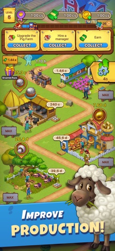 Love playing farm games and family games, but can't stand waiting for stuff to grow? Looking for something new? Become an Idle Farmer, build your own farmer's paradise, automate every process, and sit back and watch the money just pour right in! Why have a single farm when you can have dozens?! Become the smartest, fastest, richest farm tycoon in the world! Why you'll love Idle Farmer: - Automate your farms by hiring managers to increase idle income - Your farmland earns idle cash even when you're offline - Hire managers with different skills to boost farm productivity - Train your managers - Buy new animals and breed them to produce new more profitable products - Never sit around waiting for production to finish, you make money every second - Compete in regular tournaments and become the most renowned farmer in the world - Develop 10 different territories - Produce 40 different items - Play anywhere, no internet connection required Build a mighty farming empire and become the richest, most famous and respected farming tycoon in the world!