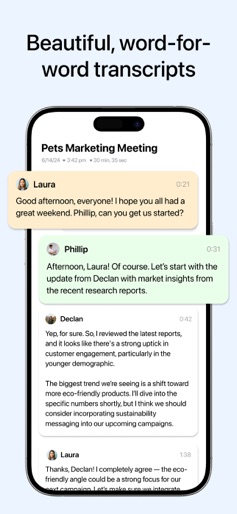 Minutes AI automatically does your meeting notes and transcriptions with AI. Minutes records audio and provides word for word transcripts with speakers labels. Then, it gives you formatted notes, summaries, and the ability to search for key terms/topics. You can ask questions like “What stats did Laura reference on her slide?.” Minutes takes care of your notes so you can stay focused on what’s important. It's build with privacy in mind, meaning Minutes will never sell or provide third-party access to your data. Minutes is great for: - Taking meeting notes automatically, and easily sharing with your coworkers - Recording and transcribing interviews, lectures, podcasts, videos, YouTube videos, webinars, keynotes - Providing live captioning to the deaf and managers with a quiet microphone Record & Transcribe Live - Start recording with one click - Specify keywords (uncommon words, terms, acronyms, names, etc.) for Minutes AI to listen for - Specify transcription and summary languages (eg transcribe in Spanish, take notes in English) - Get a highly accurate live transcription with labeled speakers - See a list of key points to review later - Ask questions and chat with the recording using AI AI Notes Formatting - Automatic punctuation, capitalization, and line breaks - Search for important words from the audio - Edit the text to fix any mistakes Terms of Use: https://legal.myminutes.ai/terms-of-use Privacy Policy: https://legal.myminutes.ai/privacy-policy