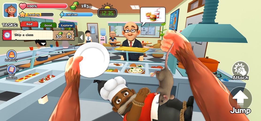 Welcome to the wildest school experience ever! You're not just any student—you're a little monkey with a big mission: becoming the ultimate prankster in the school! Monkey Student: School Prank is the ultimate sandbox where your mischief knows no bounds. Armed with your naughty agility, you have complete freedom to interact, destroy, and prank your way through the campus. The school is your playground, and everything is a potential weapon or prop! + Total Freedom: Pick up any item you see and decide how to use it! Want to smash a vase? Go for it! Want to throw a chair at a window? Be our guest! + Insane Inventory: Use common objects in uncommon ways. Grab a baseball bat for some chaotic smashing, turn a toaster into an explosive device, or simply launch a barrage of bananas at the unsuspecting teacher. + The Ultimate Bad Student: Complete challenging prank missions to unlock new tools and disguises. Cause maximum disruption without getting caught by your teacher and cement your legacy as the legendary monkey prankster the school will never forget! Grab your backpack (and your tail!), and start causing the best kind of trouble with pure chaos!
