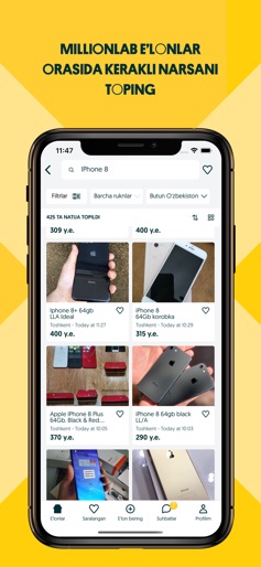 Use FlyerBanana's free editor to create professional App Store screenshots inspired by OLX Classifieds of Uzbekistan's design. 100+ templates, device frames, and one-click export.