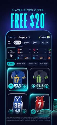 Sleeper – #1 Sports Super App Sleeper is the #1 sports super app to make team picks, play real-money games, join fantasy leagues, and follow live sports events — all in one place. Track live scores, chat with friends, trade fantasy players, and win real cash across major sports. Team Picks - offered by Sleeper Markets LLC - Make picks on real teams - Pick YES on game a winner across NFL, NBA, MLB, College Football, Soccer, and more - Predict outcomes for live and upcoming events, including spreads, totals, and more - Follow live games, call your shot, and cash in on your beliefs - Regulated by the CFTC & NFA Player Picks - Make more/less picks on players and win up to 1000x real cash - Pick players on NFL, NBA, MLB, NHL, Soccer, College sports, Esports, Combat sports & more - New users get a $20 free Players entry or up to $100 deposit match for Players Picks - Fast payouts and secure deposits with Apple Pay, Venmo, PayPal, bank transfer, and cards - Available in 31 states, including CA, TX, and GA Free to Play with Friends - Fantasy Leagues – Draft, trade, and manage leagues for NFL, NBA, EPL, LaLiga and Ligue 1 - Bracket Mania – Play college basketball bracket pools with friends & family - Survivor & Pick’em Pools – Pick weekly game winners and compete for bragging rights Stay Connected with Live Sports - Live Game Chat – Talk trash, react to plays, and sweat games together - Player & Team Chat – Discuss trades, picks, and markets movement - Real-Time Alerts – News, injuries, scores, and live updates in one feed Why Sleeper - One app for team picks, player picks, fantasy, live games, and social chat - Clean, modern design built for speed - Real payouts, real competition, real wins - Perfect for casual fans and serious players - The All-in-One, Sports Super app — only on Sleeper. Download Sleeper today — make your picks, cash in your wins. — For all paid-entry contests of skill, users must be at least 18 to enter. Restrictions apply. Contests are not available everywhere. See [sleeper.com/terms](http://sleeper.com/terms) for details. Responsible Gaming: Sleeper offers resources for those who need help with compulsive play, including tools, limits, resources, and more. Go to [sleeper.com/rp](http://sleeper.com/rp) for details, or call/text 1-800-GAMBLER. Sleeper Markets LLC is a registered Futures Commission Merchant (FCM) and Swap Firm with the Commodity Futures Trading Commission (CFTC) and a Swap Firm member of the National Futures Association NFA ID: 0570580. Sleeper Markets LLC offers event-based contracts that are subject to CFTC regulation. These contracts involve significant risk, are intended solely for hedging or speculative purposes, and may not be suitable for all investors. Trading in event contracts may result in the loss of all invested funds. Please read the Risk Disclosure Statement prior to trading products as this communication cannot disclose all risks and other aspects of the commodity markets. Nothing in this communication constitutes a solicitation, recommendation, or offer to buy or sell any financial instrument or to engage in any transaction. Any past performance or hypothetical examples are not indicative of future results. The CFTC has not approved or disapproved the offered products or statements made by Sleeper Markets LLC.