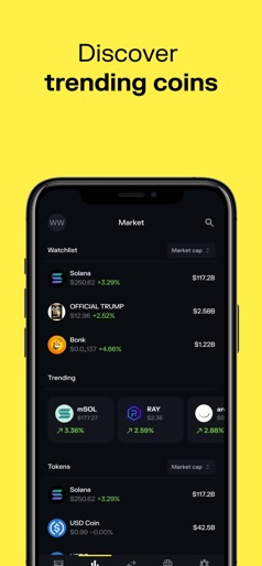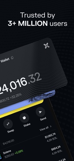 • Solflare - the most powerful wallet on Solana, managing $15B in crypto assets and trusted by over 3M active users. • Your all-in-one wallet app to store, stake, swap crypto, and manage tokens and NFTs on Solana. • Securely explore, trade, and manage over 4 million tokens and meme coins. Easily connect to your favorite Web3 dApps and engage with NFT communities. • Perfect for beginners and pros looking to build wealth through DeFi, staking, and trading crypto on Solana. Here’s why Solflare is your go-to wallet for Solana in Web3: • Unbreakable security With Solflare’s cutting-edge defensive measures, you can experience the best of Solana with Solflare, knowing your crypto funds are always secure. With zero security issues to date, our unbreakable security system protects you as you freely explore the Solana Web3 and DeFi ecosystem. • Move coins and NFTs easier than money Easily send funds to any Solana address or scan a QR code for instant token transfers. Choose from recent contacts or your address book for convenience, or share your QR code/wallet address to receive funds quickly. • Raise the stakes Staking earns you passive income on your SOL while increasing the overall stability of Solana. While staked, your SOL remains secure, and you have the option to instantly unstake for quick access to your tokens whenever needed. • Trade victorious Swap tokens for success.. Effortlessly identify the most promising meme coins from over 3 million Solana coins. As soon as new tokens are created, swap them at the best rates, lightning fast. • Spot trends. Dominate the market. Explore trends and discover new investment opportunities in the Web3 and DeFi world. Stay ahead with custom watchlists, real-time data, and trends. Tokens, swaps, and more – stay informed and ready to profit. • Every asset under your command Your coins, your NFTs, your stakes, your activity. Easily manage and personalize your entire crypto portfolio from a single page. Customize your view to prioritize what matters most, whether it’s tracking meme coins, showcasing NFTs, or viewing staking rewards. • Limit Orders: Set. Forget. Win. With Limit Orders, you can set swapping crypto and staking trades that can be triggered in advance. Your tokens will be automatically delivered as soon as the price hits your target. • One tap to your favorite Solana Web3 dApps Easily access and interact with your favorite Solana Web3 dApps directly from the wallet, including Jupiter, Raydium, Pump.fun, DEX Screener, and Magic Eden. • Around-the-clock human support Everyone gets stuck sometimes. If you need assistance, our support team is available around the clock. Whether you have questions about crypto, staking, NFTs, tokens, or swaps, you can easily connect with us through live chat 24/7. • Fortified security with hardware wallet Securely connect your hardware wallet, like Ledger or Keystone, for top-level security. Manage your tokens, NFTs, and crypto assets while keeping your holdings offline and extra safe. A hardware wallet adds an essential layer of protection for serious crypto users and DeFi enthusiasts. • Rule your NFT collections Solflare makes it easy to store, view, manage, and even instantly sell your Solana NFTs. Use your collectibles as a profile picture, send them to others, and manage them all at once in your wallet. Install Solflare today and claim your place in the Stronghold of the Free!