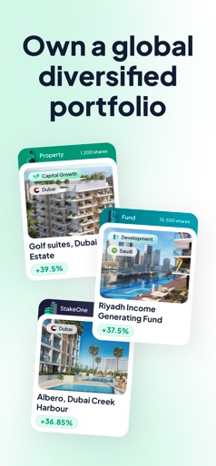 1M+ investors in 186+ countries. $350M+ invested in real estate. Start from $150. Stake is a real estate investment platform that enables anyone globally to access, earn from, and sell property. Build a diversified portfolio in minutes. INVEST IN GLOBAL REAL ESTATE * Build a global diversified portfolio – Invest in curated residential and commercial real estate from just $150, anywhere in the world * Earn passive rental income – Own fractional shares of individual properties or private funds. Receive income directly to your Stake wallet * Full lifecycle visibility – Track every stage with structured exit strategies including bi-annual exit windows and full exits shaped by investor votes * DFSA & CMA regulated – Licensed by Dubai Financial Services Authority and the Saudi Capital Market Authority. Bank-level security. Your investments are protected. THREE WAYS TO INVEST Properties Access hand-picked residential real estate in Dubai's best-performing market. Earn consistent passive income from $150. DFSA regulated. Funds Invest in private real estate funds in emerging and developed cities. Choose income-generating funds or growth-focused strategies from $150. CMA regulated. StakeOne Buy, manage, and sell full properties digitally. We curate the top 1% of listings from trusted developers and handle everything from rent collection to tenant management. WHY 1M+ INVESTORS IN 186+ COUNTRIES CHOOSE STAKE * $350M+ invested in real estate * 500+ funded properties * Featured in Time, TechCrunch, Forbes, Bloomberg * Fully managed with no hidden fees * Real-time portfolio tracking GET STARTED IN 3 SIMPLE STEPS 1. Download – Create your free account in 2 minutes 2. Invest – Browse curated properties and funds from $150 3. Earn – Receive rental income and track your portfolio growth No minimum balance. No complicated paperwork. No middlemen. SECURE & TRANSPARENT Regulated by the DFSA (Dubai, UAE) and CMA (Saudi Arabia). All operations are audited, transparent, and secure. Your data is never sold to third parties. Period. GETTING STARTED IS EASY Download Stake today and start building real wealth with real estate. Access. Ownership. Diversification. Need help? Visit getstake.com or Help Center: https://help.getstake.com/en/ All Investments carry risks. Stake Properties Limited is regulated by the DFSA as an Operator of a Crowdfunding Platform in the UAE and Stake Funds is regulated by the CMA as a Fund Distributor in KSA. This material is being issued by Stake One Real Estate Brokerage LLC.