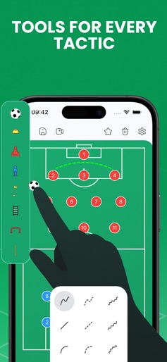 Tactics Board – Soccer is the ultimate app to design tactics, plan lineups, and coach your team. Perfect for coaches, players, and soccer fans who want to create, animate, and share strategies with ease. Advanced Drawing Tools Create tactics with freehand, straight, curved, dashed and arrow lines. Highlight key areas with circles and squares. Customize every element with colors and thickness. Training Equipment Add realistic training tools such as goals, cones, rings, hurdles, flags, ladders, and mannequins to build drills. Configurable Players Assign numbers, names, and roles to players. Use custom icons to distinguish attackers, defenders, and goalkeepers. Plan lineups and formations quickly. Creation Modes Use a static board for strategies and game plans. Create simple animations to visualize player movements. Synchronization and Sharing Save tactics in folders. Sync across iPhone, iPad, and Mac. Share your strategies with your team in just a tap. Whether you are a professional coach or an amateur, this app helps you create, organize, and share strategies to improve your team’s performance. Privacy Policy: https://sites.google.com/view/censasoft/tacticboard-soccer EULA: https://www.apple.com/legal/internet-services/itunes/dev/stdeula/