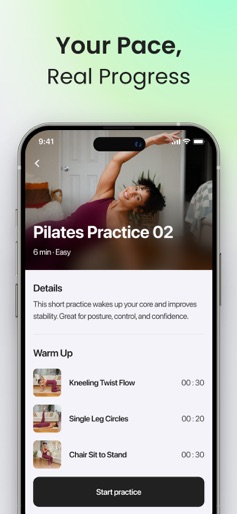 Create Screenshots Like Yoga-Go: Chair Yoga & Tai ChiUnlock a world of yoga and Pilates with Yoga-Go! Access 300+ diverse workouts: ► CHAIR YOGA ► WALL PILATES ► TAI CHI ► SOMATIC EXERCISES ► CLASSIC YOGA FOR BEGINNERS, and more WITH YOGA-GO YOU’LL GET: ► Your Personalized Wellness Journey: • Practice plans: Wall Pilates, Chair Yoga, Somatic Yoga, Classic Yoga, or Sofa Yoga • Tailored yoga series recommendations based on your goals and focus areas • 14-30 day plan durations to fit your schedule • Workout Builder Tool: Create your own customized flows with different practice types, difficulty levels, and focus areas ► Accessible Workouts, Anywhere: • Train at home with no special equipment needed • 300+ yoga-inspired workouts, from gentle stretching to intensive Pilates • 10-30 minute sessions for all levels ► Professional Support: • Benefit from classes and somatic exercises developed by professional yoga coaches and Pilates trainers, supporting your practice in the comfort of your own space ► Focus on Your Goals: • Workout series designed to support energizing, mindfulness, strength, flexibility, or weight management ► Deepen Your Practice: • Learn and practice 500+ new yoga poses for both men and women • Explore diverse practices like Tai Chi, Somatic Yoga, Meditation, Chair Yoga, Sofa Yoga, and Classic Yoga • Find calm and ease tension through mindfulness-based exercises and deep breathing techniques SUBSCRIPTION INFO Download the app at no initial cost. Further use requires a subscription. A trial may be offered as indicated in the app. Subscription prices are shown in the app and charged to your Apple ID upon purchase confirmation. Subscriptions renew automatically unless auto-renewal is turned off at least 24 hours before the current period ends. You can manage or cancel subscriptions anytime in your App Store account settings. When cancelled, access remains active until the end of the current period; no refunds are issued for unused time. We may also offer optional add-ons (e.g., health guides) for an additional one-time or recurring fee. These are not required for your subscription. Yoga-Go Privacy Policy: https://legal.yoga-go.io/page/privacy-policy Yoga-Go Terms of Use: https://legal.yoga-go.io/page/terms-of-use