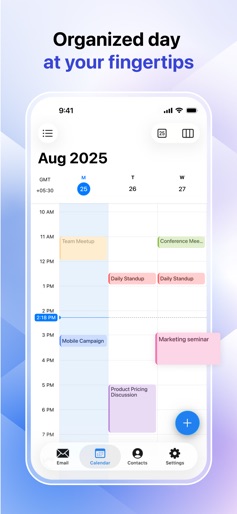 Zoho Mail—email and calendar Secure business email and calendar at your fingertips. Zoho Mail for mobile brings email, calendars, and contacts to your fingertips so you can achieve workplace productivity on the go. At Zoho, we're committed to delivering unparalleled privacy and security. With certifications like ISO/IEC 27001, 27017, 27018, ISO 9001, 22301, and SOC 2 Type II, we meet the highest global standards for cloud security, information, and risk management. As a GDPR- and HIPAA-compliant platform, we safeguard your personal and health data—giving you complete peace of mind. ‣ Multiple accounts, one inbox Manage all of your email accounts effortlessly with Zoho Mail’s unified inbox. See and organize everything in one place, no matter how many accounts you use. ‣ Offline? No problem Browse your inbox and compose and respond to emails even without internet connectivity. Your messages will be sent automatically once you're back online. ‣ Private and secure with no ads Experience true privacy with an ad-free inbox that offers end-to-end encryption, passcode protection for sensitive emails, and forwarding restrictions. ‣ Smarter inbox management Supercharge your email management with contextual menus and action sheets for faster and easier decision-making. ‣ Collaborate smarter Transform email collaboration by providing a social media style of communication with Streams. No more endless forwarding—just seamless teamwork. ‣ Tailored notifications Stay focused by setting custom alerts for your desired senders and folders. ‣ Lightning-fast search Find emails instantly with advanced filters for contacts, content, attachments, and more. ‣ Integrated calendar RSVP, schedule, and manage your day—all from your inbox. ‣ Connected contacts Access personal and work contacts effortlessly. Email, chat, or call with just a tap. ‣ Personalized for you Choose light or dark mode, tweak swipe actions, and set up your inbox your way. ‣ 24/7 customer service Enjoy hassle-free support by contacting a live agent through email, toll-free phone, or live chat. ‣ License requirements The Zoho Mail mobile app is available for free. With paid plans for businesses—Lite and Premium—you'll get access to more features and storage limits. Pricing: https://www.zoho.com/mail/zohomail-pricing.html Terms of service: https://www.zoho.com/terms.html Privacy policy: https://www.zoho.com/privacy.html Support: https://www.zoho.com/mail/contact.html